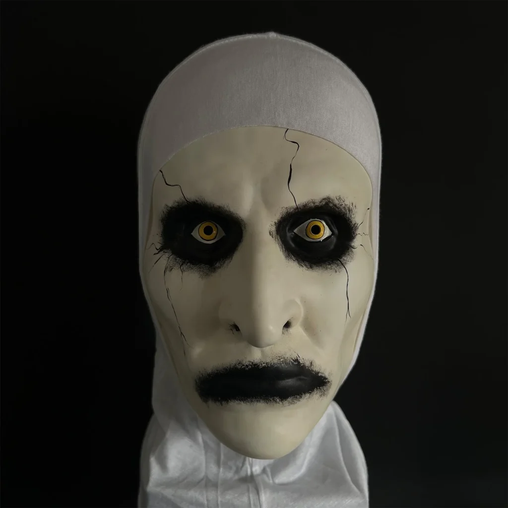 The demonic Valak from The Conjuring universe remains one of the most terrifying horror icons, and this mask captures that fear perfectly. One standout feature is its piercing gaze, which seems to follow you around the room, making it even more unsettling. Made from Vacuform, the mask has a bust-like appearance when displayed on a mannequin head, thanks to the long white veil that fully covers the wearer’s head. It’s a truly haunting piece, perfect for any horror fan or collector.